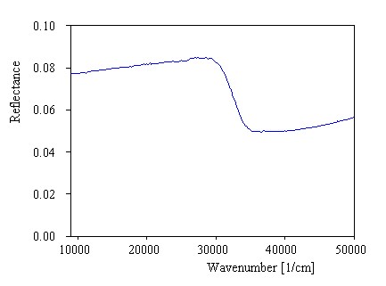 Use the Import menu item to open a spectrum data file. In the file dialog you can specify the import format that is to be used for reading the file. Open the file glass_r.spc using the SpectraCalc format. The experimental data range from 9000 to 50000 1/cm. The spectrum is the following: