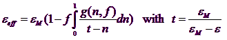 The averaging of the dielectric functions (we choose vacuum to be the host or matrix material with dielectric function εM and silver as the embedded phase with dielectric function ε) depends on the volume fraction f of the embedded phase and the shape of the function g(n,f). The latter is called spectral density.