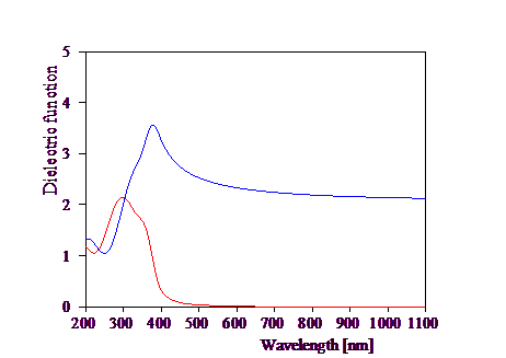Above 400 nm the pronounced interference fringes indicate an almost absorption free porous silicon layer, whereas below 400 nm strong interband transitions lead to significant absorption and an opaque porous silicon. Although porous silicon is a multiphase-composite (a silicon skeleton embedded in air in the simplest approach) it is treated here as a homogeneous material for simplicity. The obtained dielectric function (the model is based on OJL interband transitions) is the following: