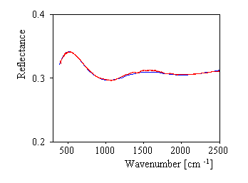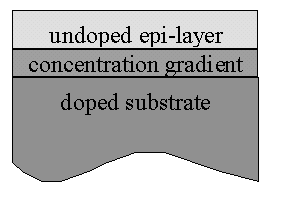 First a reflectance analysis of an undoped epitaxial silicon layer grown on a p-doped substrate is shown. As shown in the sketch to the right in between the undoped epi-layer and the doped substrate a carrier concentration gradient has been inserted. Gradients in optical properties can easily be defined in the SCOUT software.