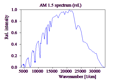 The relative spectral intensity of solar radiation in Europe is approximately given by the AM 1.5 spectrum:
