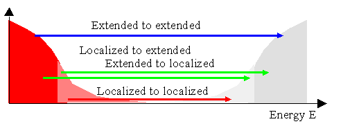 These transitions usually are not very important since the number of states involved is low and the transition matrix elements are significantly smaller compared to those of the transitions mentioned above. This is due to the fact that the matrix elements are integrals over all space over the product of two functions (the initial and the derivative of the final state) which are separated in space and hence do exhibit almost no overlap. Transitions from localized to localized states would lead to absorption in the low energy regions of the spectrum which in most cases is the near to mid infrared region.