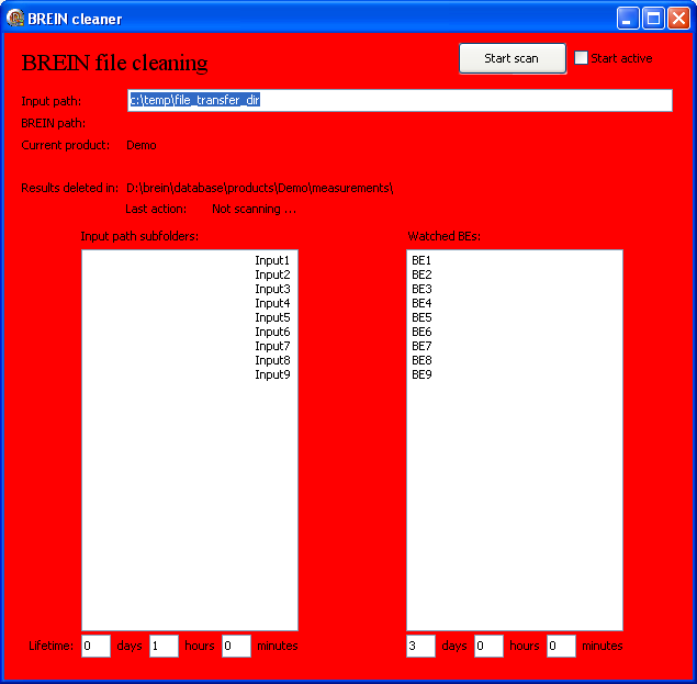 Within the BREIN database, BREIN_cleaner will watch those folders which are listed in the lower right section (called BE1, BE2, ...). For each listed subfolder, BREIN_cleaner deletes all overaged files in the /new, /in progress and /analyzed subdirectories. For each product the /new_results folder is cleaned as well.